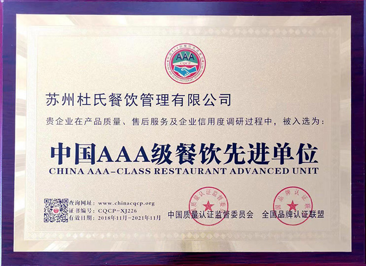 中國AAA級餐飲先進(jìn)單位-杜氏餐飲